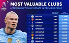 德轉英超球隊最新身價榜:曼城11.8億歐居首,槍手第2紅軍第3